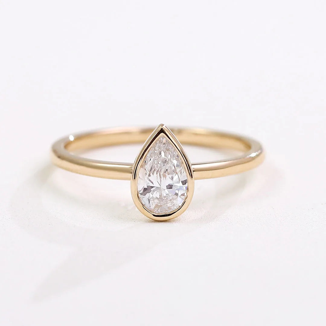 Solid gold stackable ring set with emerald, oval & pear lab diamonds. 14K/18K yellow, white or rose gold. Perfect as an engagement, wedding, or custom gift. Shop now! ADD TO CART>>> FREE SHIPPING!
