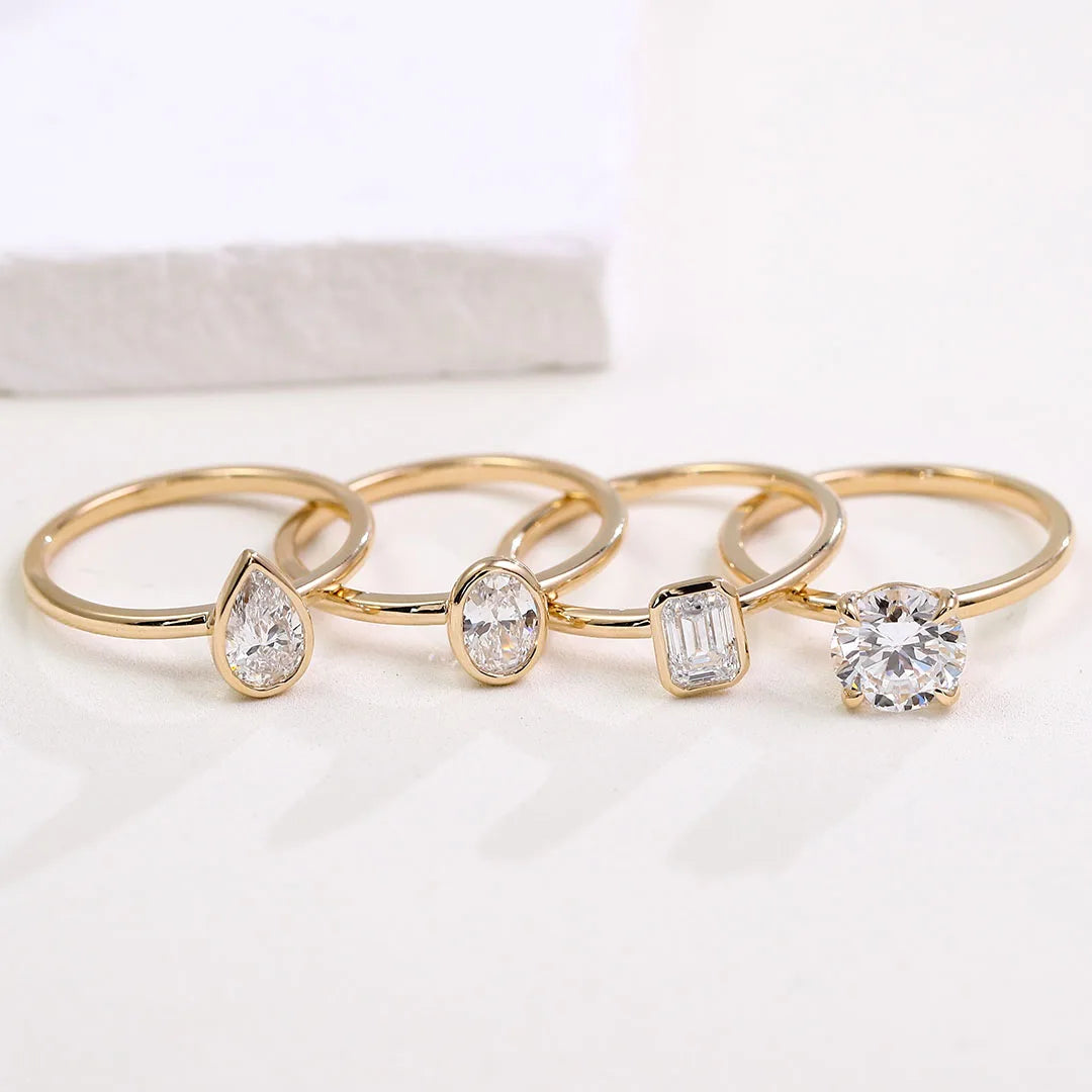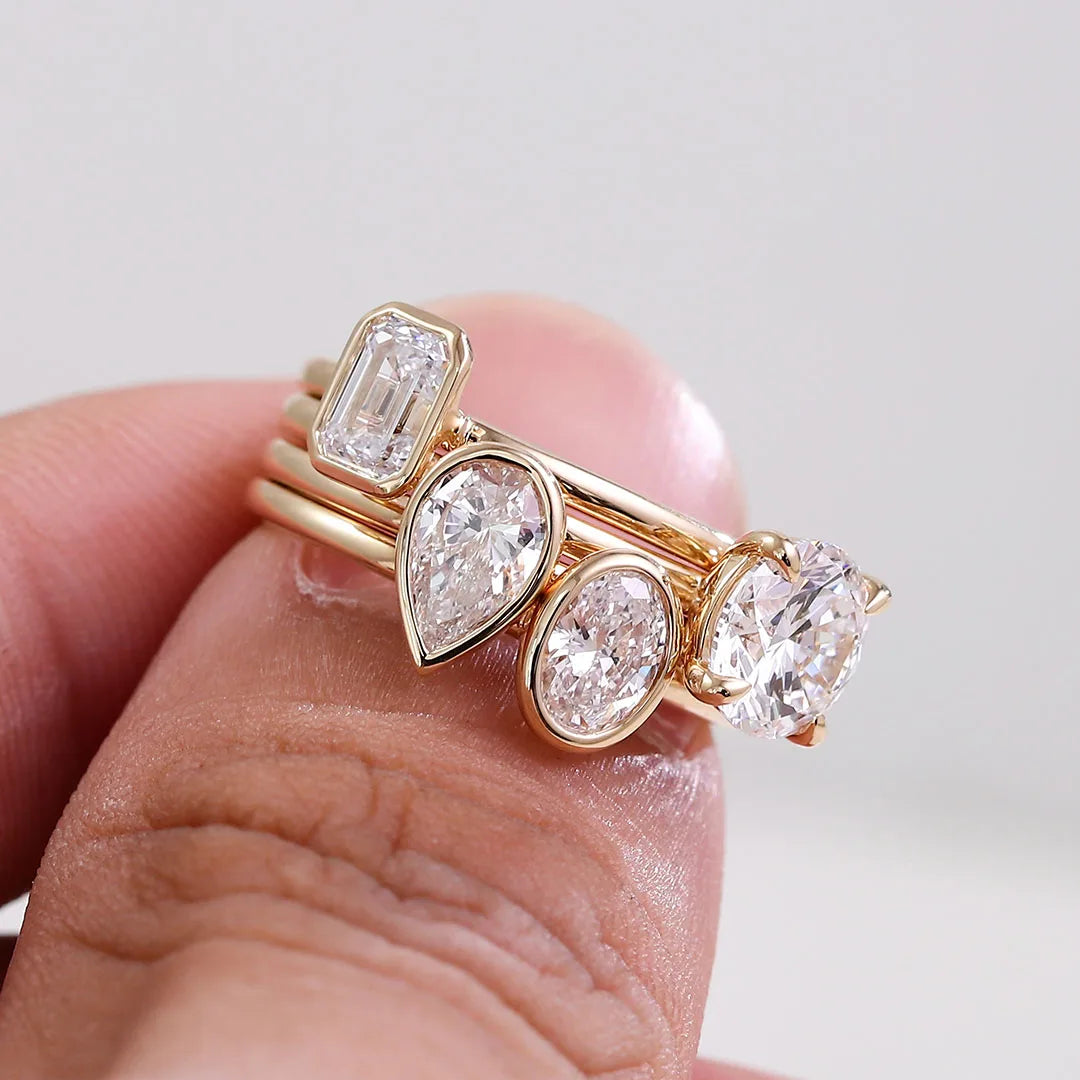 14K/18K Solid Gold Stackable Ring Set – Emerald, Oval & Pear Lab-Grown Diamond Trio | Custom Engagement & Wedding Band Gift for Her