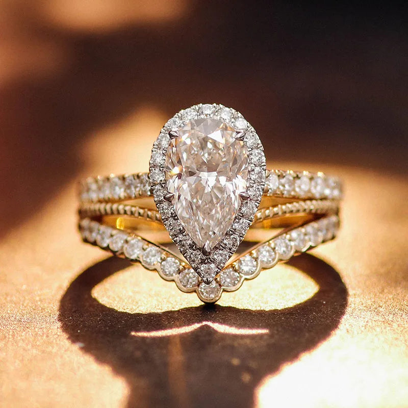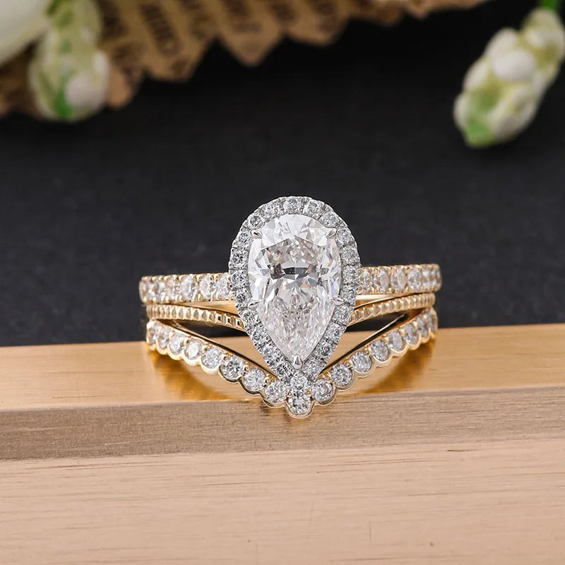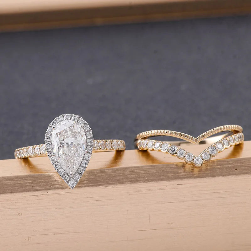 14K gold wedding ring set, pear cut lab diamond engagement ring, 1.5CT DEF VVS-VS diamond ring, fairytale princess engagement ring, IGI certified lab diamond ring, yellow gold wedding band set, white gold engagement ring, pear shaped diamond bridal set, ethical luxury engagement ring, conflict free diamond wedding set, women's luxury jewelry set, proposal ring gift, bridal stack set, VVS clarity lab diamond, DEF color diamond ring, custom engraved wedding rings, timeless engagement band set, affordable luxury diamond ring, IGI report diamond, hypoallergenic gold ring set, nickel free wedding jewelry, anniversary gift ring set, heirloom quality bridal rings, sustainable fine jewelry set, 2026 engagement ring trends, pear cut diamond ring women, cathedral setting engagement ring, halo pear diamond ring, flush fit wedding band set, lab grown diamond bridal jewelry