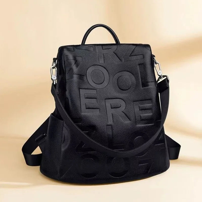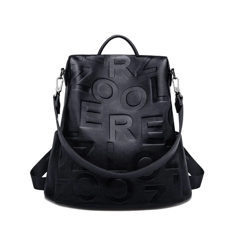 2026 designer genuine leather backpack for women. Black letter pattern large travel bag. Perfect for business, travel & daily style. Premium quality. Shop now! ADD TO CART>>>